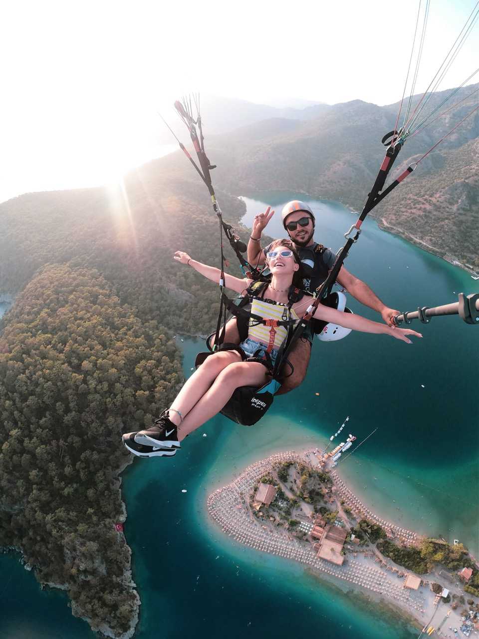 After takeoff, guided by your pilot, you’ll begin to rise from the ground with a few steps. You’ll open your arms to take in the mesmerizing view of Ölüdeniz and the fresh air. It’s a moment where you’ll feel truly free like a bird.
